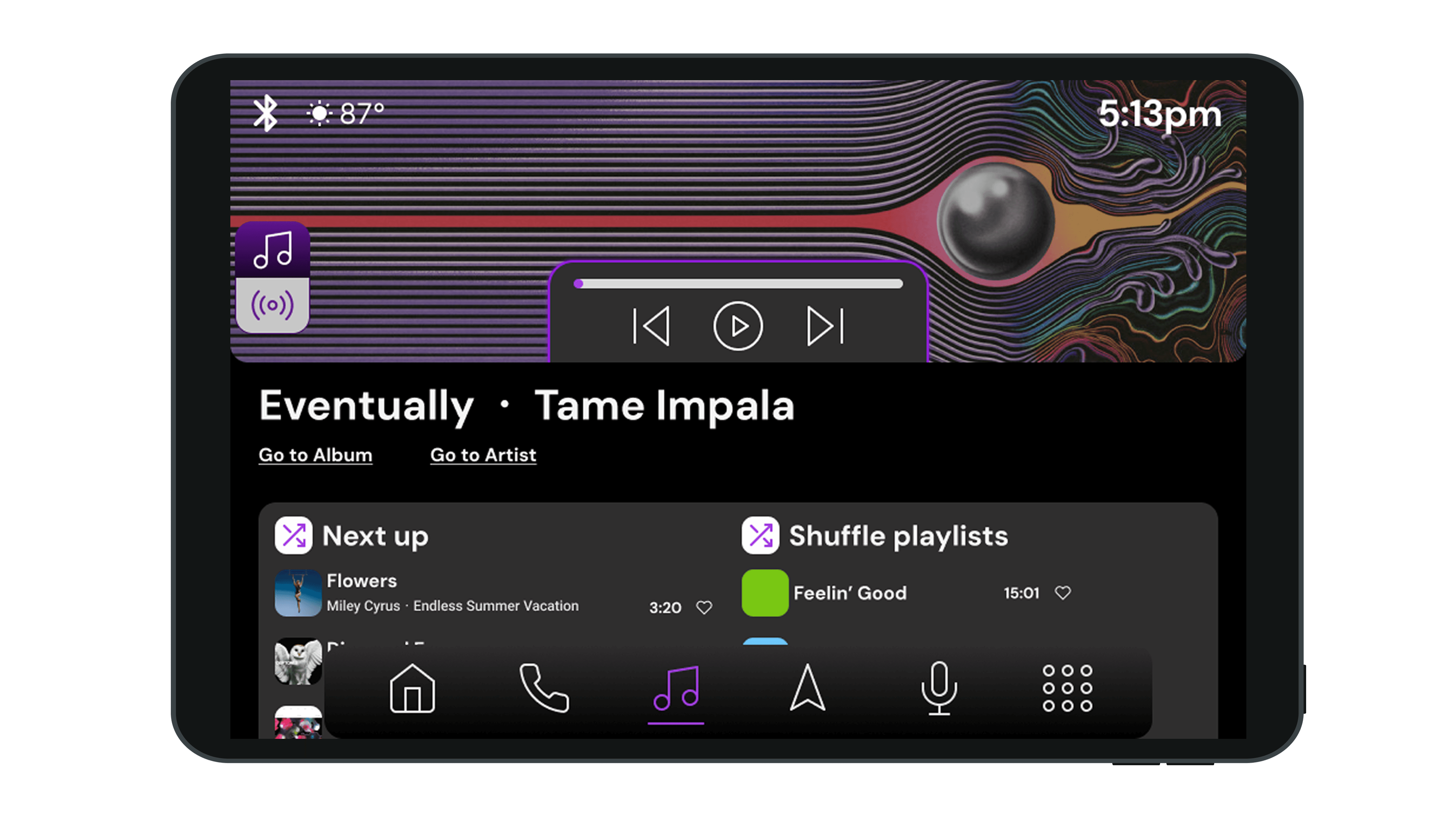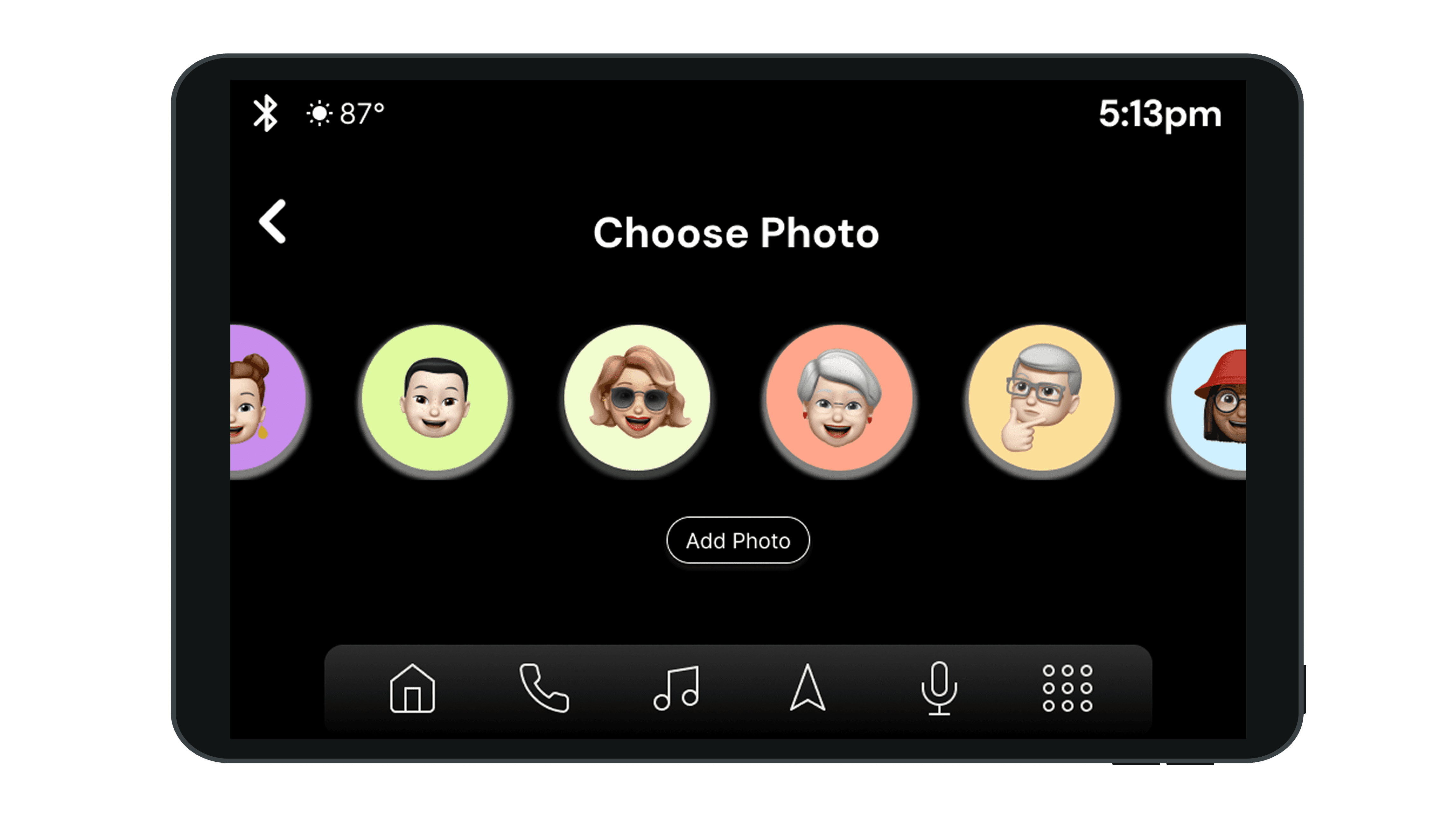 Praxis simplifies the driving experience by focusing on essential functions—navigation, calls, music, and voice control—organized clearly and safely.